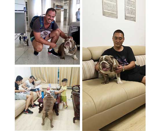 這只(英牛寶寶是從匈牙利——中國)抱著英牛寶寶的是我俄羅斯業務員的女兒,全家都很喜歡狗狗,也有很寬敞的院子讓狗子們散步
